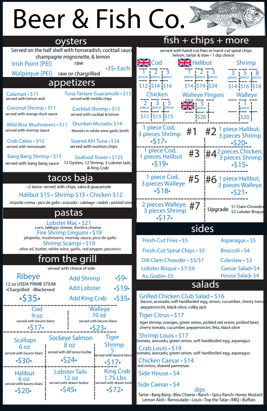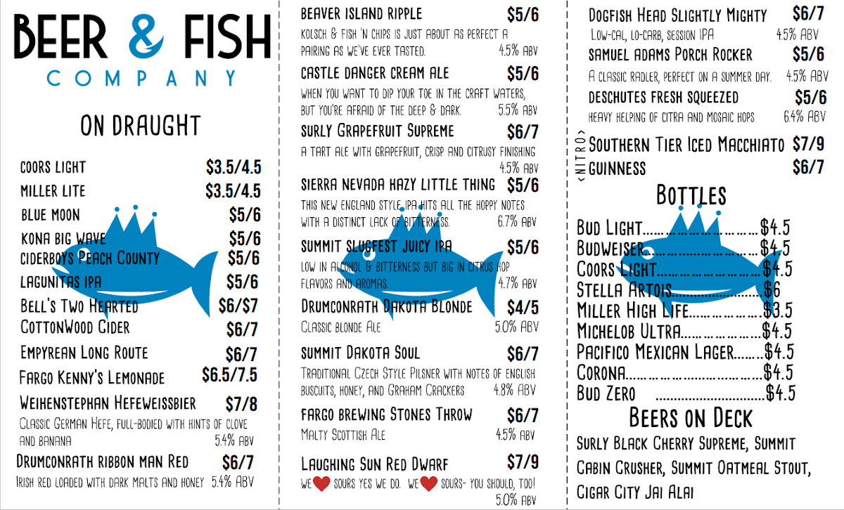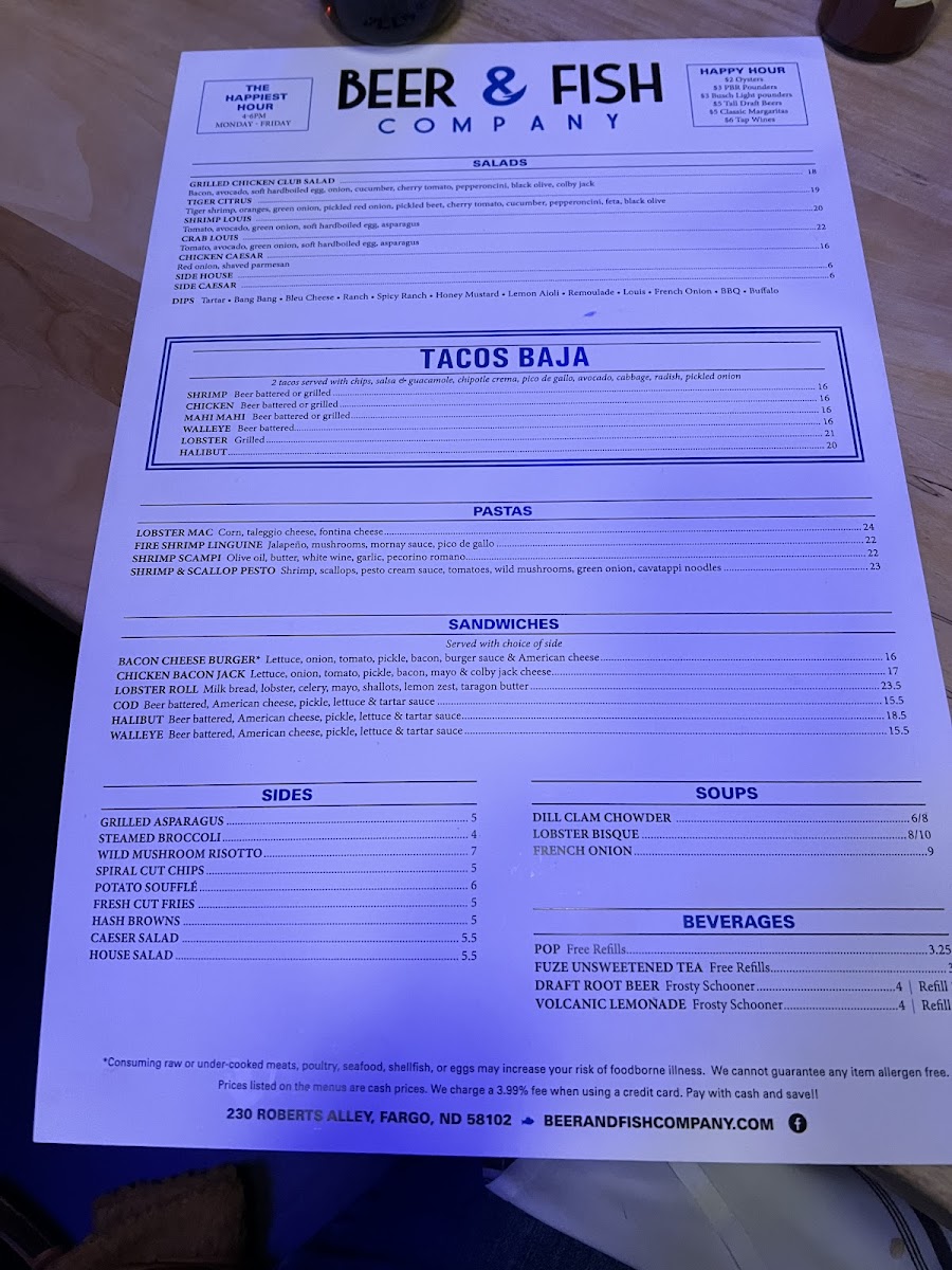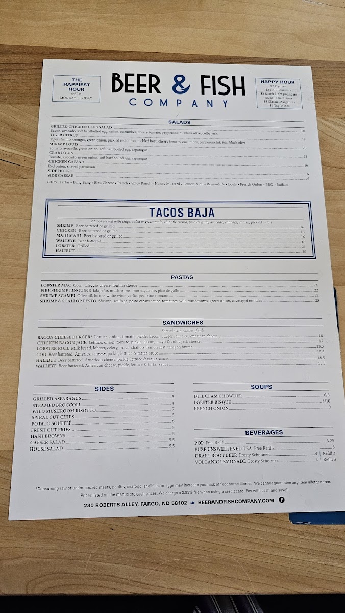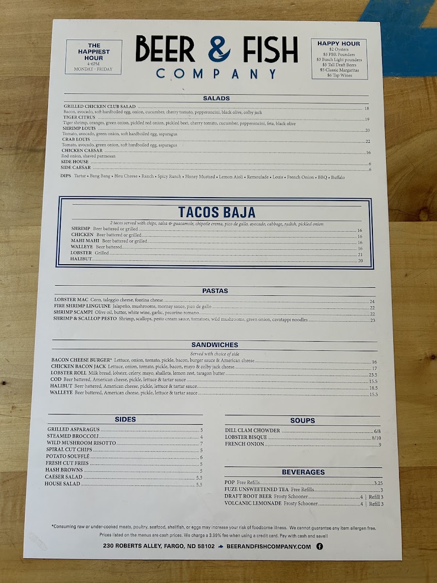 Welcome to Beer & Fish Company, a gem nestled in Fargo, ND, where seafood lovers can find a delightful menu crafted to impress. The ambiance is warm and inviting, with friendly service that makes you feel right at home.